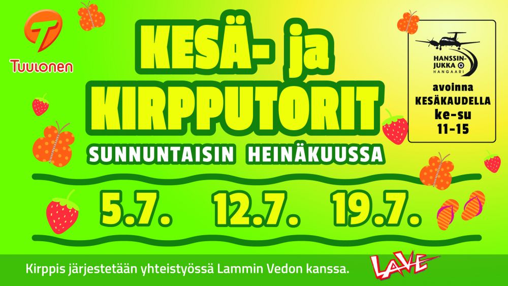 2026 Kesä-ja kirpputori sunnuntaina 5.7.2026Kauppakeskus Tuulosen piha-alueella sunnuntaina 5.7.2026 jälleen kesä-ja kirpputori. Tapahtuman järjestää Lammin Veto ry.